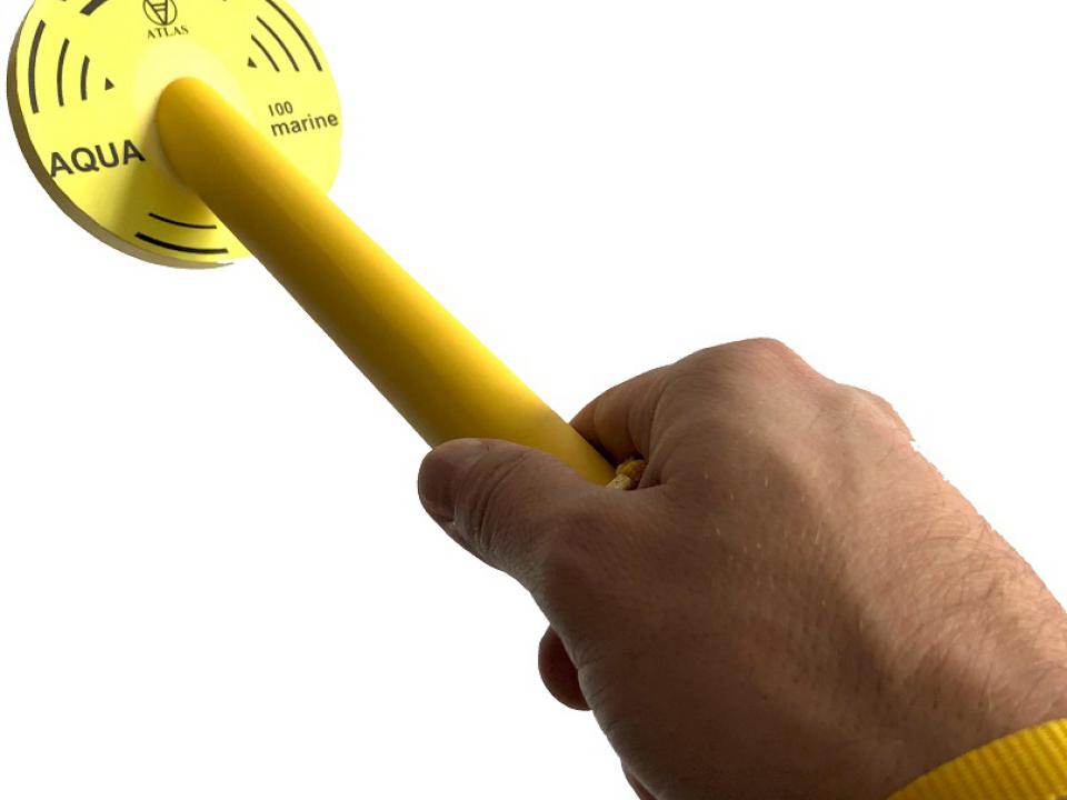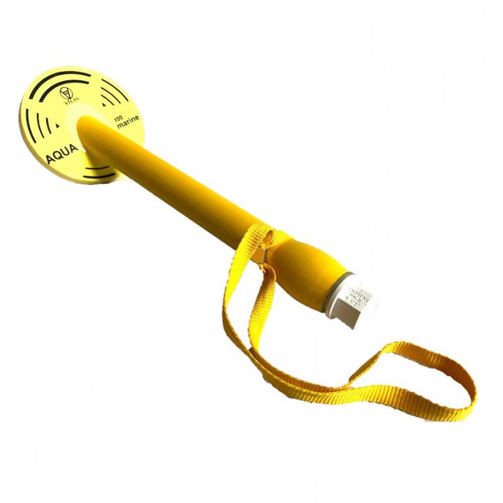 Встроенная поисковая катушка металлоискателя AQUAmarine имеет диаметр 10см. Катушка выполнена в монолитном корпусе из полиуретанового пластика с повышенными прочностными характеристиками, как на излом, так и на истирание. Катушкой можно копать мягкий грунт или песок. Поэтому при обнаружении места залегания находки металлоискатель можно использовать для её извлечения в качестве лопаты или раскопочного инструмента. Катушка имеет пространственно ориентированную зону чувствительности, поэтому для точного обнаружения места залегания объекта в выкопанном грунте для поиска используется не плоская часть катушки, а её ребро. На ребре катушки чувствительность ниже, и зона сканирования составляет менее одного квадратного сантиметра.