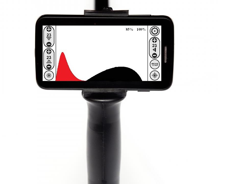 - На задней стенке процессорного блока металлоискателя располагается камера 8 Мп для получения снимков найденных объектов.